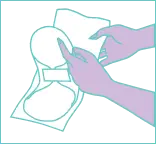 Befestige die Klebeseite sicher in der Mitte deiner Unterwäsche und wickle die Flügel darum